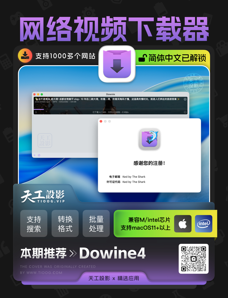 Downie 支持从众多视频网站轻松下载视频。